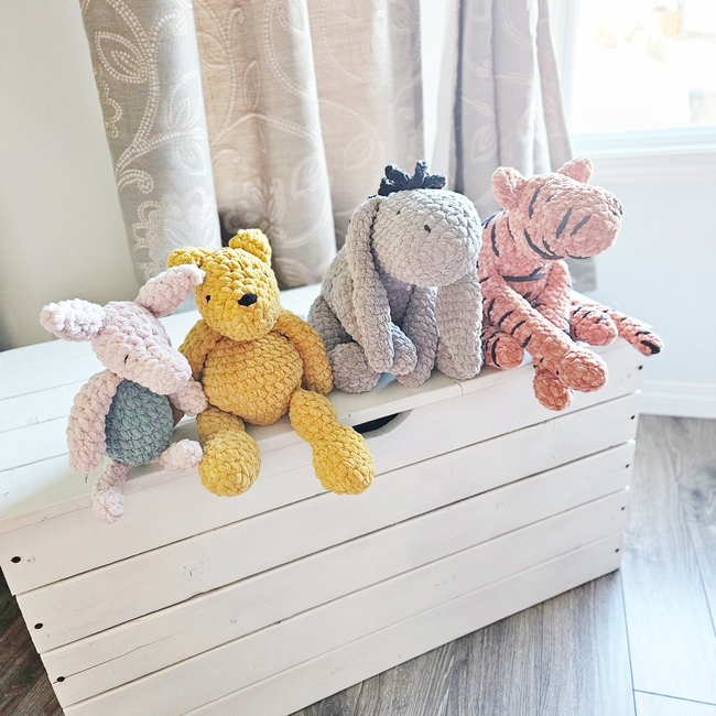 Classic Winnie the Pooh, Piglet, Eeyore, and Tigger Amigurumi Crochet Pattern Bundle