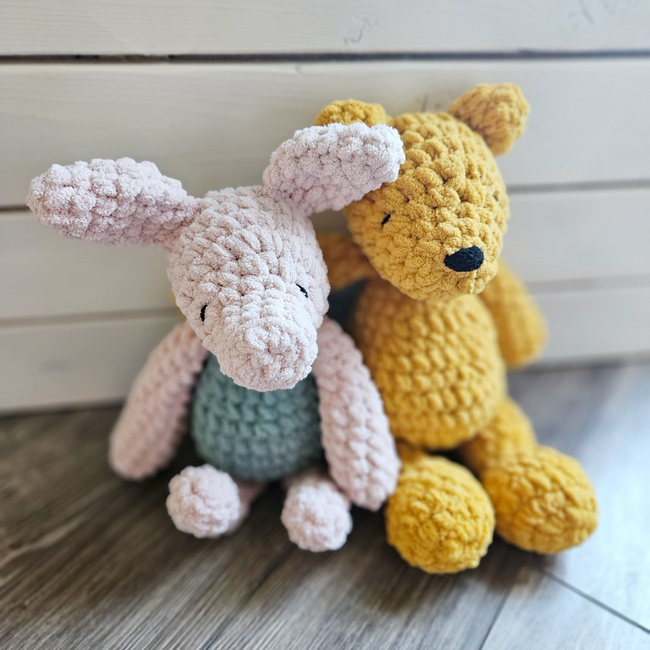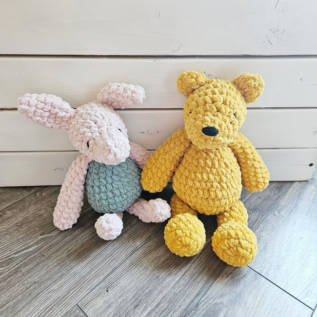 These amigurumi designs are based on the original Winnie-The-Pooh characters from the 1926 children's book by English author A. A. Milne and English illustrator E. H. Shepard.