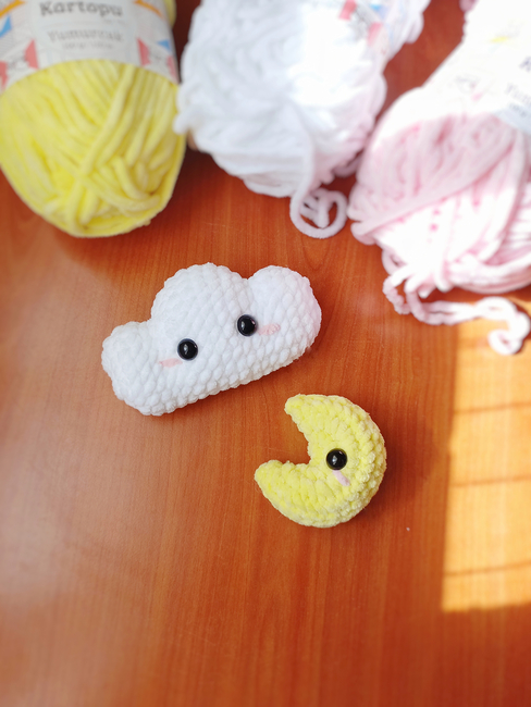 Make your own adorable cloud and moon with TulipYarn pattern, The pattern is well-explained, easy to follow, and will definitely give you an adorable result!