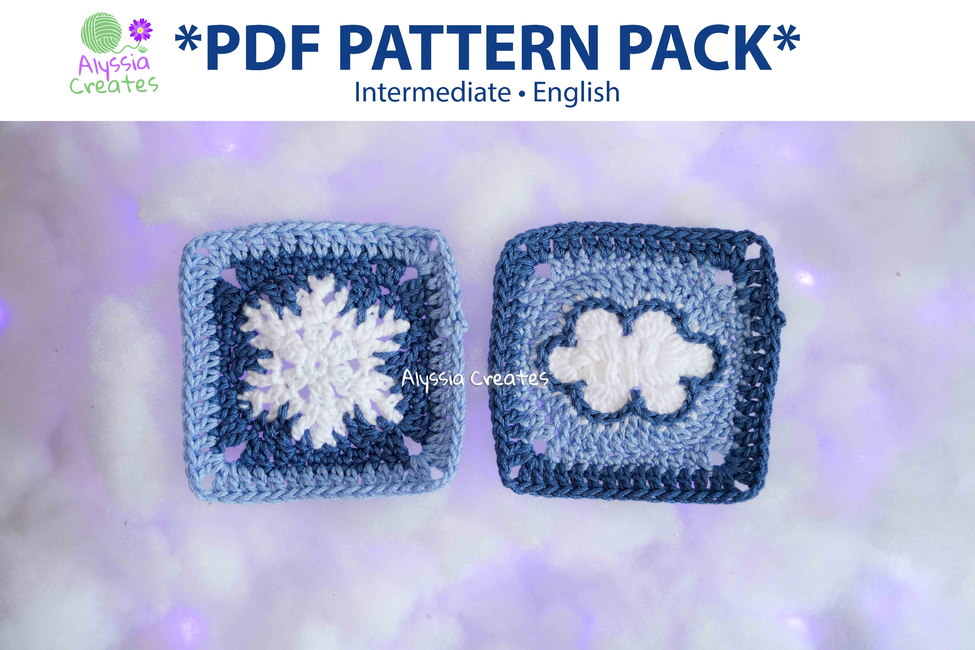 This is a pattern bundle for my cloud and small snowflake granny squares! The patterns are detailed and include many photos for those that are more visual learners!