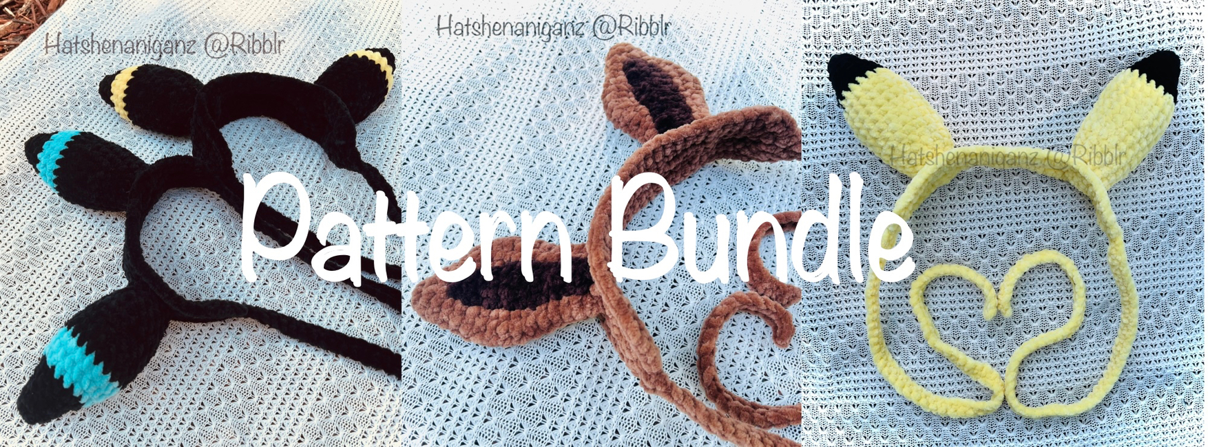 Make 3 different cute and cozy Pokémon headbands! Pattern is made with Premier Parfait yarn but works with Bernat Blanket or other similar chunky yarns.