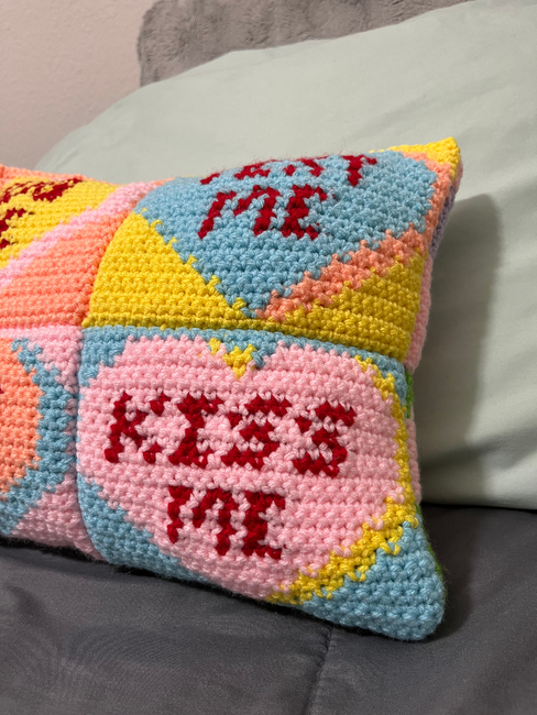 This pattern includes 12 different conversation hearts, perfect for Valentine's day! I also walk through if you want to make them a pillow or bag! You're able to make any combination you'd like :)