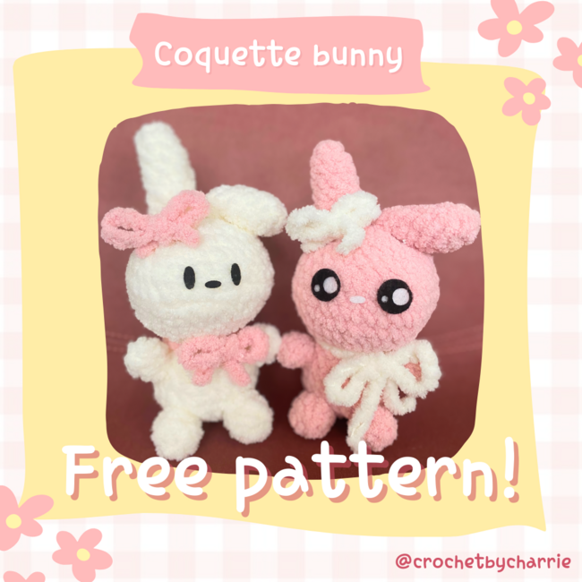 With this pattern you can make your own adorable coquette bunny. Suitable for beginners and a pretty quick make!