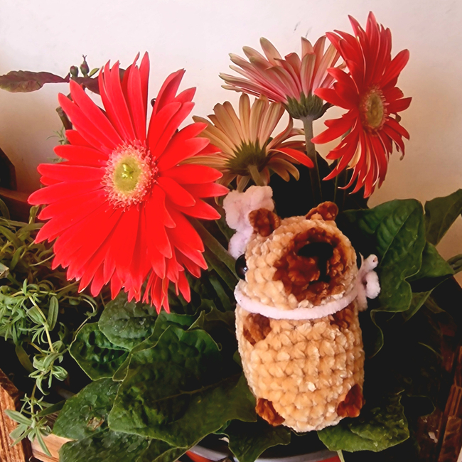 Dressed to impress with a dainty bow on her head and another perfectly tied at her neck, this handmade capybara plushie brings a touch of charm and elegance to the chill vibes she's known for. With her soft yarn body, sweet bean-like features, and irresistibly huggable shape, she's the perfect companion for cozy days, dreamy décor, or a little dash of whimsy on your shelf. Whether you're a capybara enthusiast or just smitten with sweet, handmade plushies, this flirty little friend is sure to steal your heart.