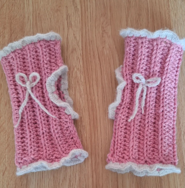 The Coquette Fingerless Gloves pattern is free on Ribblr.