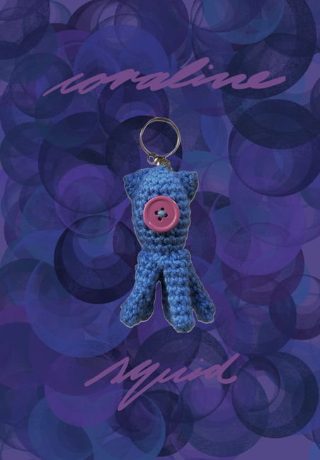 This Coraline crochet pattern is perfect for crocheters that want to try out to make the create the small details in the movie Coraline. This Coraline squid is an easy keychain.