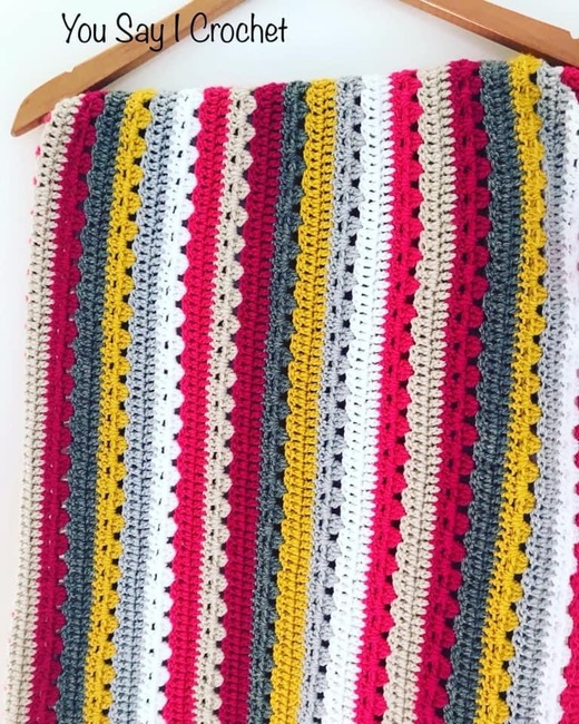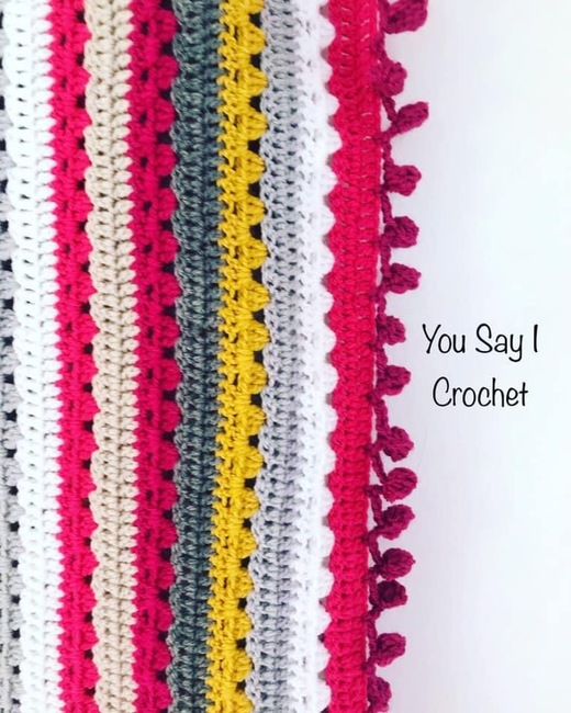 This is the pattern only for this cosy stripe crochet blanket with pompom border.