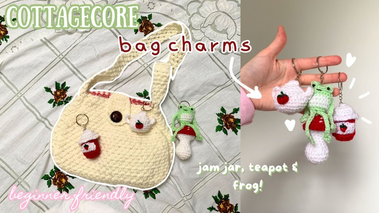 Hey everyone, welcome back to another crochet tutorial! I hope you've all been having a great week. This week's tutorial will be these cute little cottagecore inspired bag charms. For this project, you will only need 25g of DK yarn in 3 colours, and basic knowledge of SC. Enjoy!