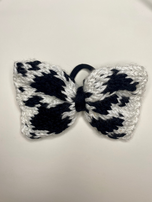 This knit bow is perfect for all ages! Attach it to a headband (I have a matching baby headband pattern available) or an elastic hair tie for kids of all ages. This bow would also look adorable attached to a pet collar. Adults can even rock this bow with a messy bun or ponytail!