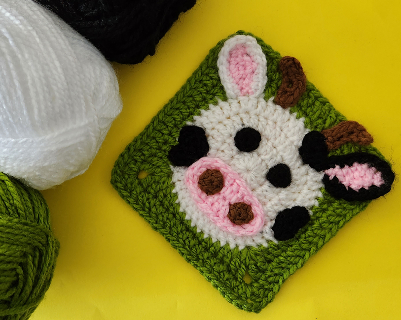 This cow granny square is adorable and perfect for farm-themed blankets, baby gifts, or just for the love of cows!