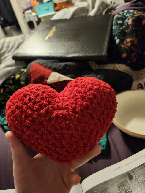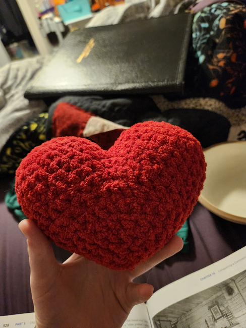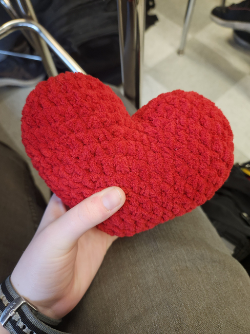 A cute little heart, perfect for initials! It works up super quick and nice and big with chunky yarn!