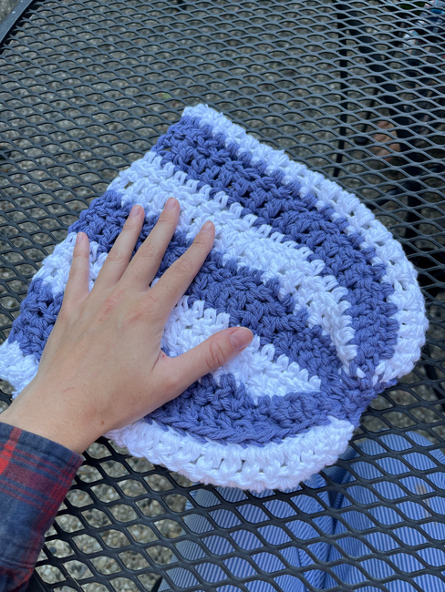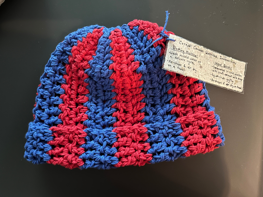 This pattern is dedicated to making adult sizes small, medium (pictured) and/or large, with key instruction on how to sew it all neatly closed! Although I used medium cotton yarn for mine, any medium-weight yarn will do as long as you double up the strands! Or you may use a chunkier yarn and not double up. Feel free to also choose whichever and however many colours you like with this pattern, so have free rein and enjoy it as you go!