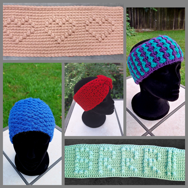 * The Trellis Earwarmer featuring a stunning faux mosaic look created with two contrasting colors.