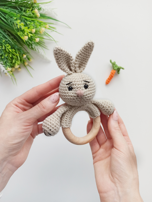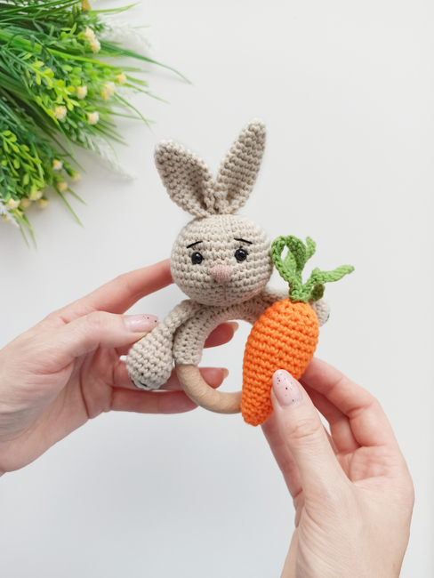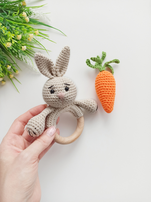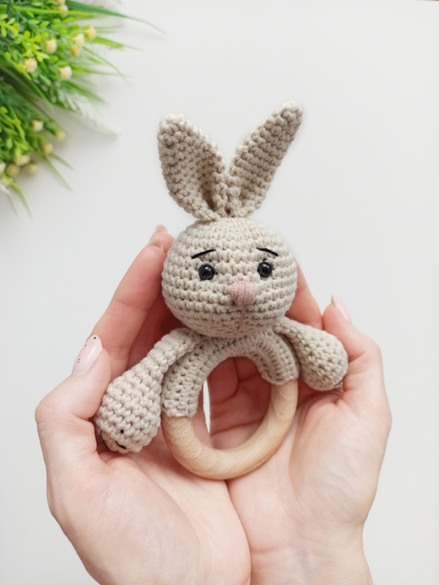 Crochet baby rattle pattern, bunny amigurumi pattern
