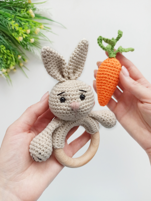 This crochet bunny baby rattle pattern will give you an interesting experience and you will for sure be in love with the finished toy) This adorable amigurumi rattle with teethering ring is the great baby shower or birthday gift for your little one.