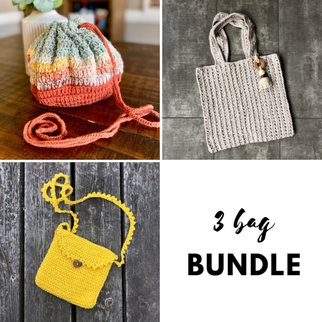 This new bundle includes three of my best selling bag patterns together! Two are made with worsted (4) weight cotton, one is made with Bulky (5) weight natural hemp fiber. All three of these bags make wonderful gifts, and you'll definitely be able to express yourself with your choice of buttons, accent pieces, and fabric lining! These bags are also wonderful for markets and bazaars if you're a maker-seller.