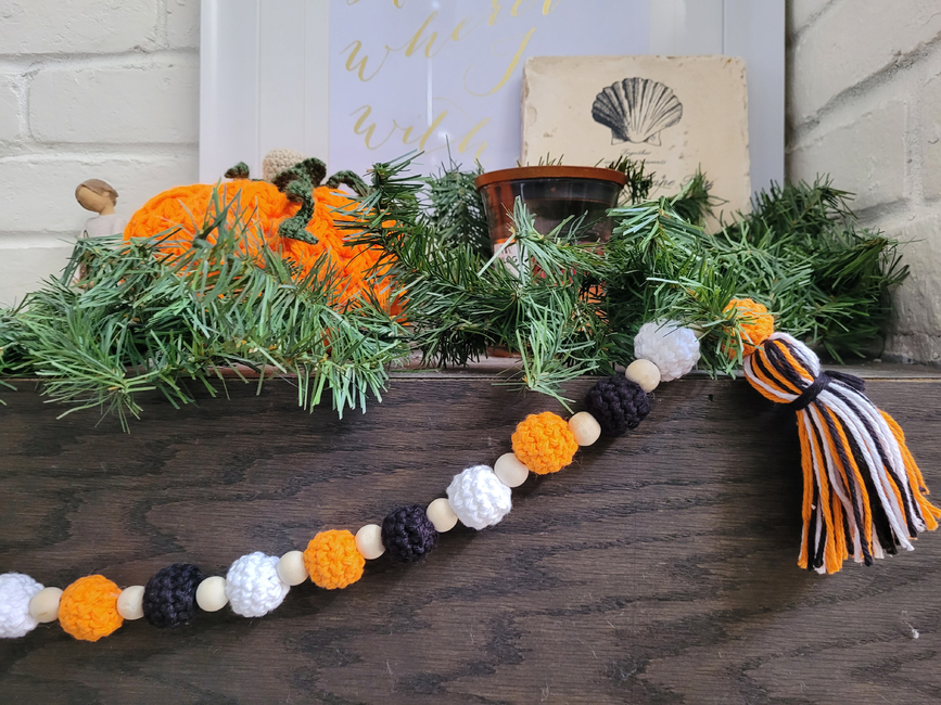 Create your own garland with crochet balls or add wooden beads in between!