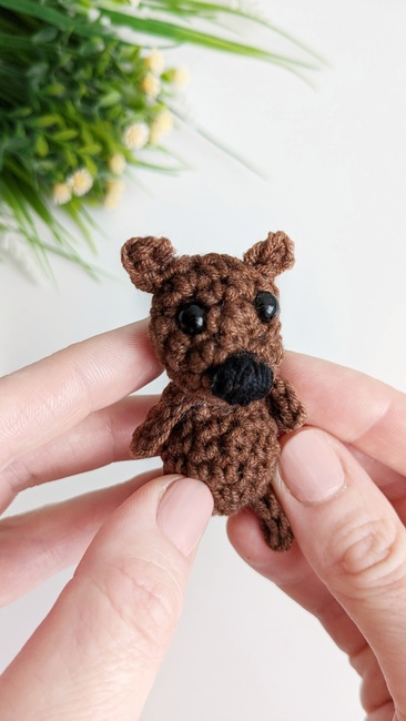 Crochet bear pattern, tiny amigurumi bear, minimum sew crochet pattern