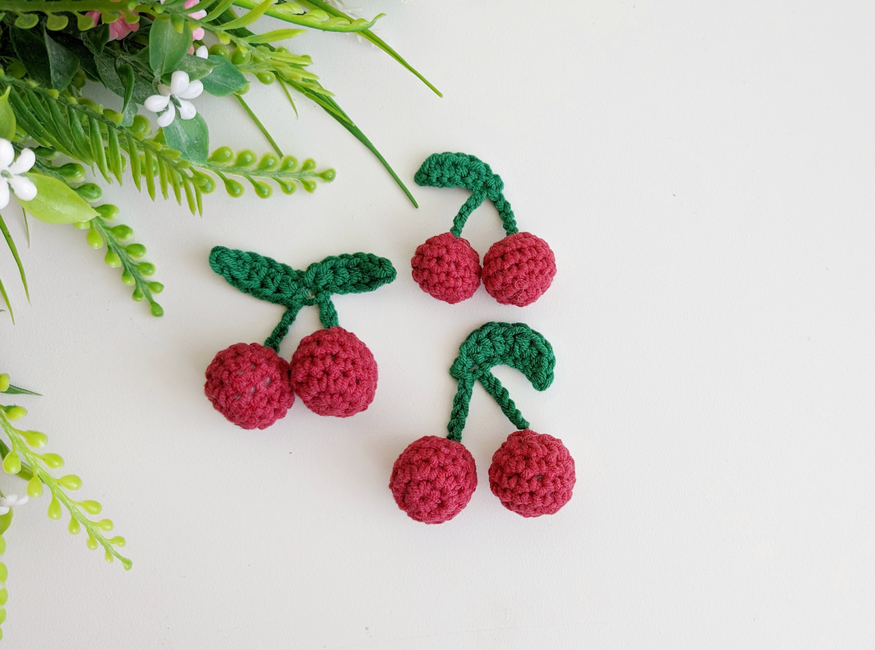 Crochet cherry pattern, easy crochet cherries, crochet keychain pattern