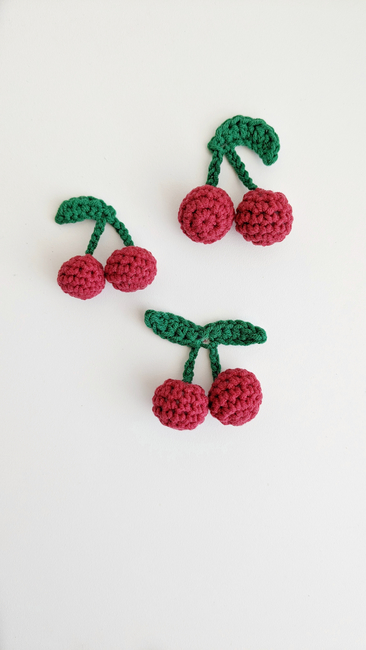 These crochet cherries are so easy and quick to make! You could make a whole bowl full of cherries or just give a pair to someone you love cherry much!