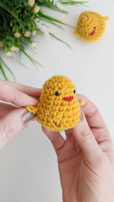 This crochet chick pattern is a great easy crochet pattern. Crochet a very cute baby chicken with this easy and fast to make NO-SEW crochet pattern. It will be a great addition for an Easter basket and the perfect addition to any collection!