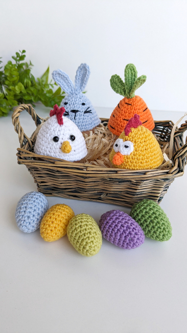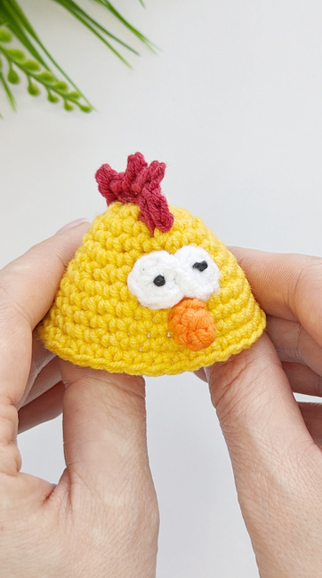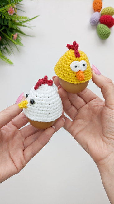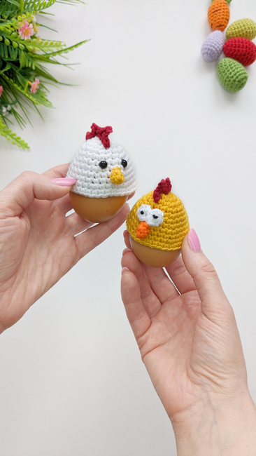 Crochet a funny chicken Easter egg cozy to decorate your Easter table! It's a perfect gift for children and a fun project for beginners.