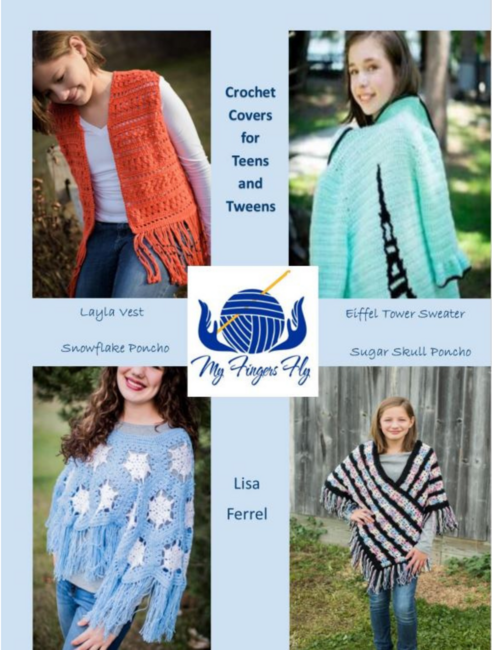 If you have a teen or tween who loves fashion, this paperback pattern book is a must-have for your pattern collection. Make her a whimsical Sugar Skull Poncho, a fashionable Eiffel Tower Sweater, a delicate Snowflake Poncho, or a throw-back hippie style Layla Vest in her favorite color. Each pattern includes complete crochet instructions for several sizes.