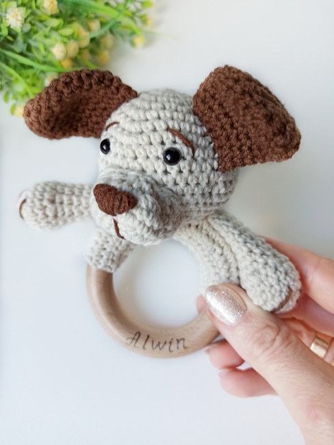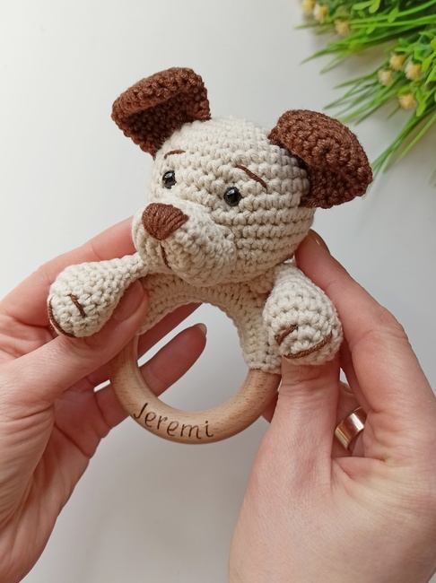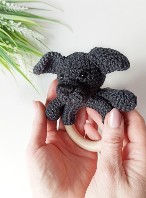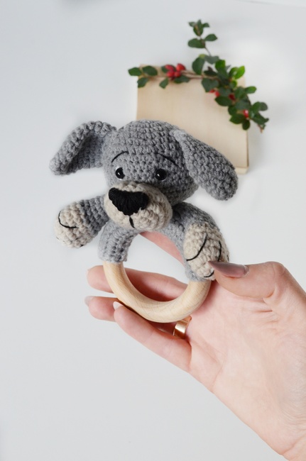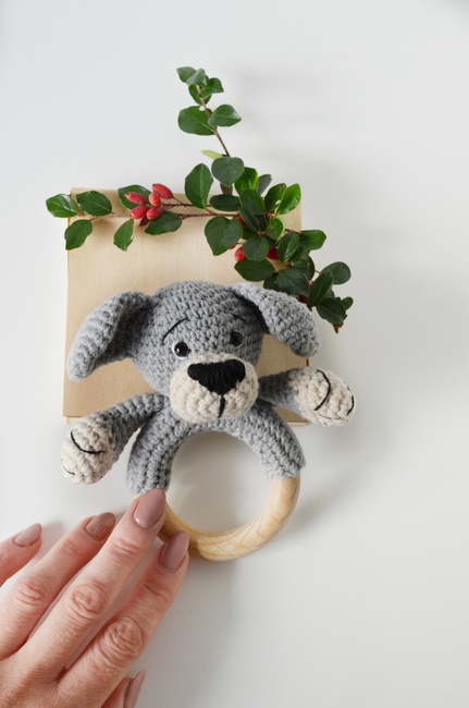 Crochet dog rattle with teether ring pattern, amigurumi baby rattle toy PDF pattern will give you an interesting experience and you will for sure be in love with the finished toy) This adorable rattle is the great baby shower or birthday gift for little ones in your life.