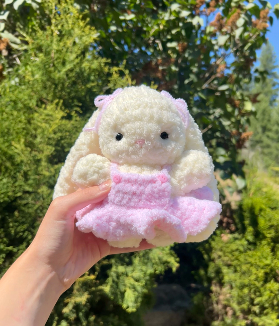This is a beginner-level pattern for an adorable no-sew dress that is made to fit my "animals in overalls" pattern in my shop (bunny, cow, honey bear, frog), as well as my "sleepy sloth."