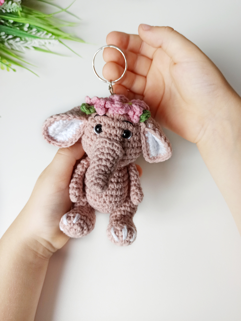 Amigurumi baby elephant crochet pattern is a nice choise if you would like to make your own adorable little baby elephant! It can be a cute keychain or it can be hung on a bagpack . This easy to follow pattern includes detailed instructions, pictures and links to video tutorials .