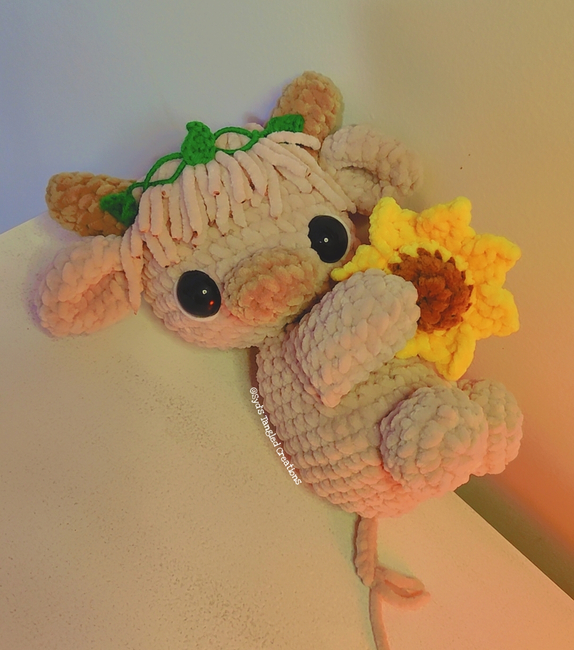 in this pattern you will learn how to make a sunflower highland cow !