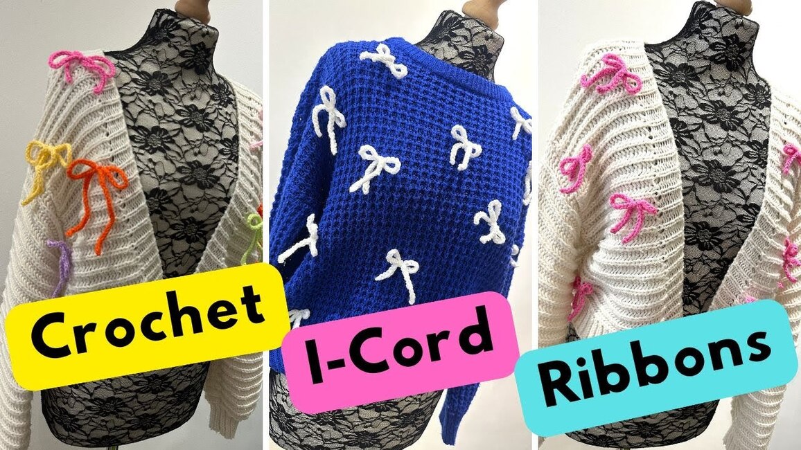 At the moment I am very into upcycling 'old clothes'. By making crochet embellishments such as these I-cord ribbons you can add them to anything from cardigans and jumpers to mirrors and picture frames.