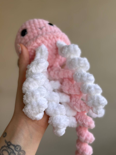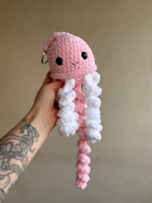 Go Plush! Want a giant jellyfish? You can easily swap the cotton for plush/velvet yarn and a larger hook to create a super-sized, huggable version using the exact same instructions!