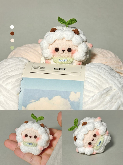 Crochet Lamb Pattern: Amigurumi Soft Toy Lamb, Lucky Sheep Amigurumi Doll, Kawaii Sheep Plush, Beginner Friendly Crochet Animal Low Sew is an Intermediate Crochet pattern designed by KoKoCrochet Atelier for making an Amigurumi. Materials / Tools : Stitch Markers Hot glue gun / Sewing Needle Poly-fil Safety Eyes (4mm) or Non-woven fabric (Leather punch DIA: 4mm) Black thread for embroidery Rogue / for the face cheeksColors / Yarn Size / Hook Size: White / Coffee / Light G...