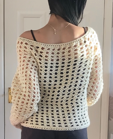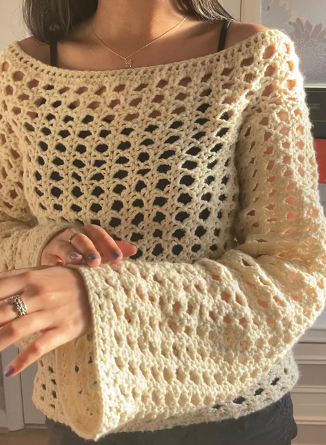 ArtisticKate designed the Crochet mesh jumper pattern. Find more of their patterns on their Ribblr shop page.