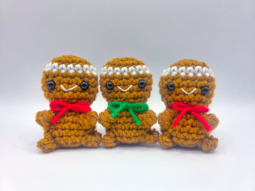 This crochet Mini Gingerbread Man can also be adapted into an adorable bag charm or ornament. The body is crocheted in continuous rounds. The only needle work is the mouth and weaving in the tails. This no sew pattern is great for amigurumi beginners and quick for crochet markets!