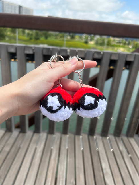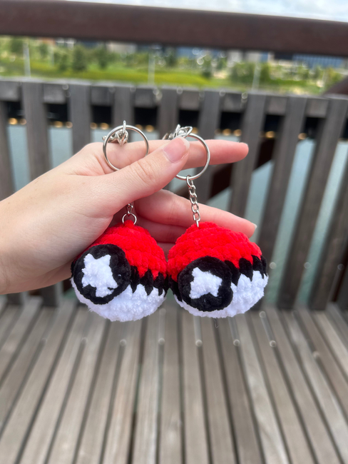 Here is my free mini Poke Ball pattern! You will need super bulky yarn in red, black, and white and a 5mm hook. I like to attach keychains to these Poke Balls.