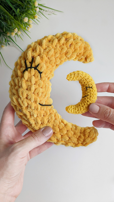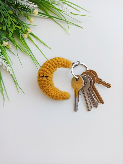 This crochet moon is an easy crochet pattern and a wonderful choice for beginner crocheters because it involves basic amigurumi skills. It's a great crochet keychain for your car, bag or backpack. It will be the cutest amigurumi pattern for a baby's mobail. You can use the amigurumi Crescent Moon pattern for home decor.