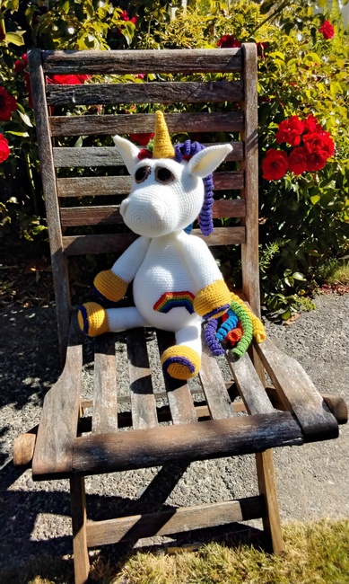 This listing is for an original pattern to crochet your own Hope the Rainbow Unicorn