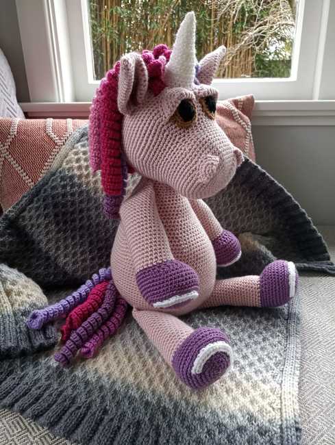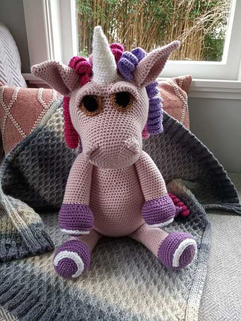 When Hope is made using the specified materials she sits at about 28cm, and is approx. 42cm from horn to hoof.