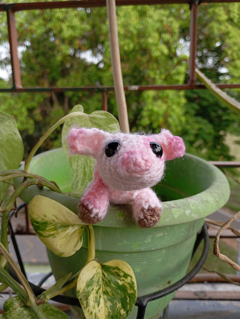To make Crochet Pig you will need: You need a little bit of brown yarn for the hooves., Pink, black, brown or grey yarn for the pig itself, Stuffing/fiberfill. Tools required: Depends on the yarn. Inam using 3.5 mm, Just a normal yarn needle, Scissors, Stitch marker.