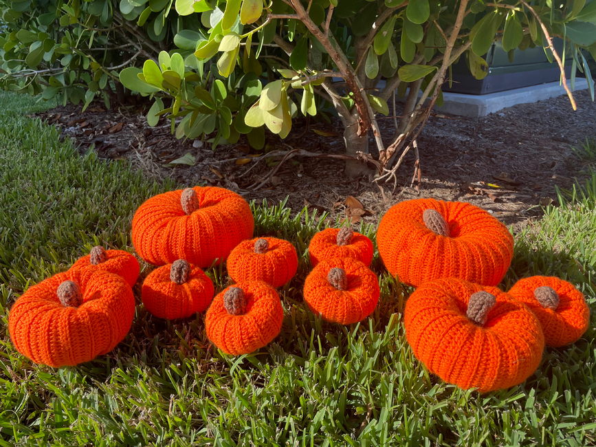 Crochet pumpkin decorations are perfect for fall! This product comes in 4 sizes (mini, small, medium, and large).