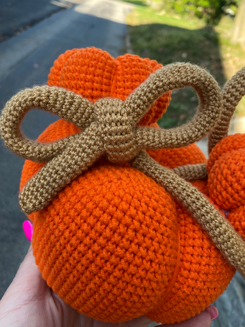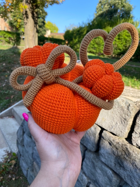 Crochet pumpkin with bow fall decor Thanksgiving Day is a Beginner Crochet pattern designed by HandcraftByMK for making an Amigurumi. This is a fun and simple crochet pattern for creating a cute large pumpkin with an adorable bow. It's a perfect project for beginners and a great addition to your autumn decor.This toy will be a great gift for your friends for autumn holidays and ...