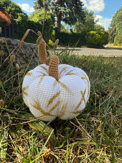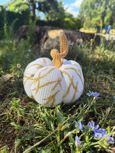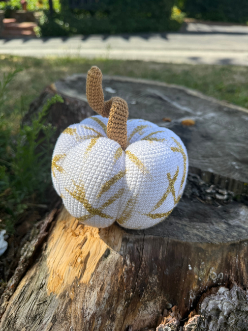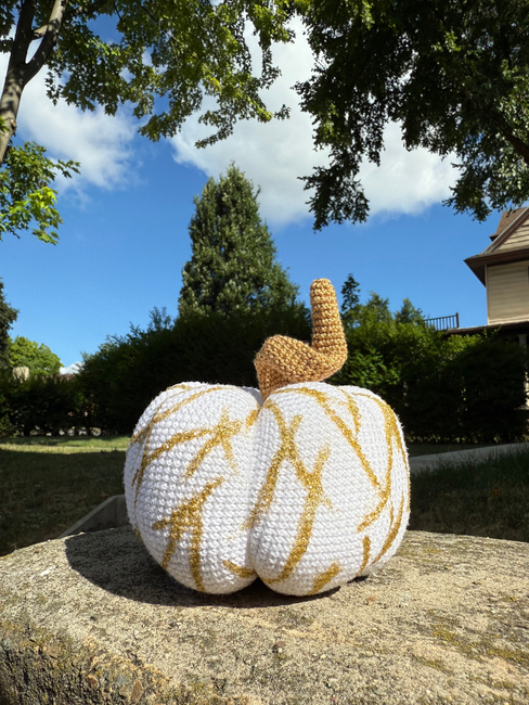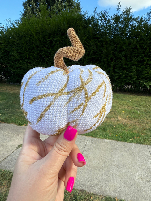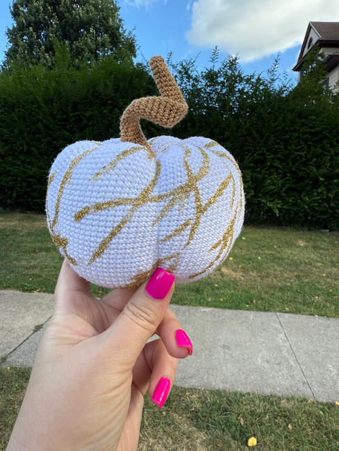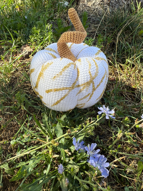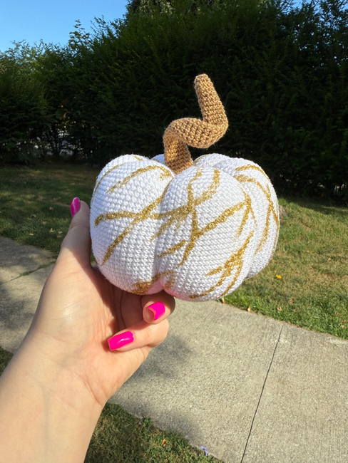 HandcraftByMK designed the Crochet Pumpkin with glitter fall decor pattern. Find more of their patterns on their Ribblr shop page.