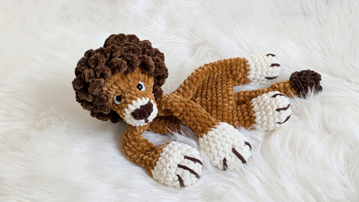 Crochet snuggler pattern, crochet lion baby lovey blanket pattern