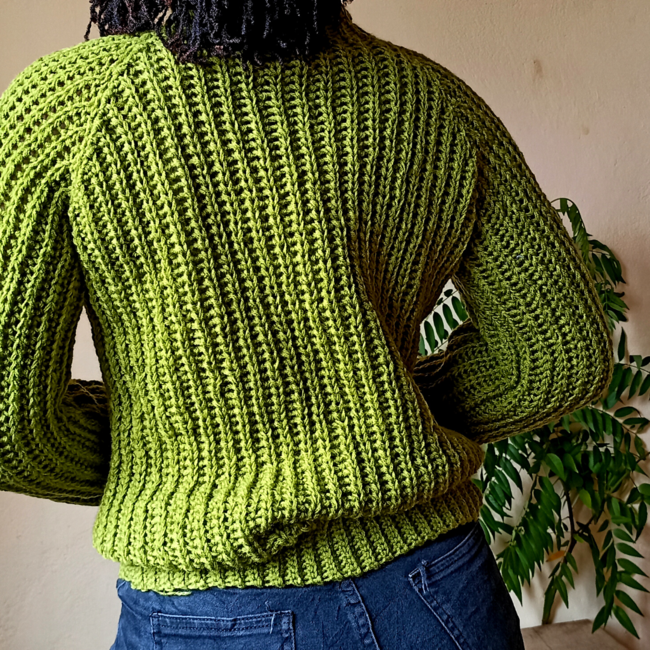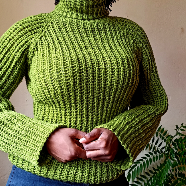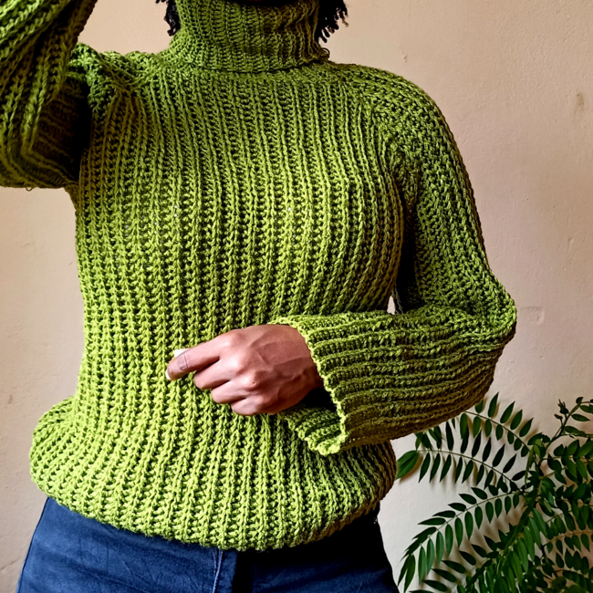 Here we are with another crochet poleneck sweater that was designed to give a knitting appearance.