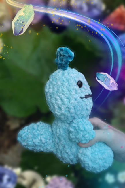Meet Crystal she is a cryolpphosaurus ellioti. Cryolpphosauruss lived in antarctica they are from the lower Jurassic time period. They are also called the Elvissaurus alot because their crest resembles Elvis Presley's hairstyle. Crystal loves exploring caves and eating fish and tacos so if you want to give her food you can. Although she is a carnivore she is nice to her herbivore friends penny the packycephalosaurua and parry the parasaurloupus. Who I will make in the future.Crystal is a Cryloposaurus but she does kinda just look like a monster or Scrump. so you can call her a monster she don't care. It just because it's my first pattern hopefully I can make a better Cryloposaurus in the future.