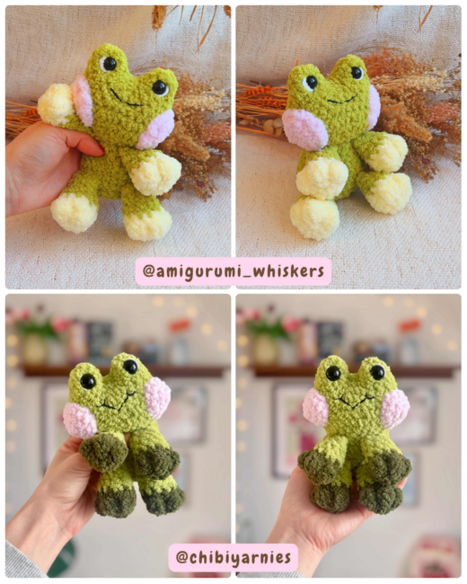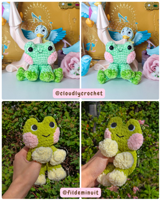This pattern includes many detailed instructions and images on how to make the cuddle froggy . Please read all the provided instructions carefully and don't forget to take a break every now and then! <3