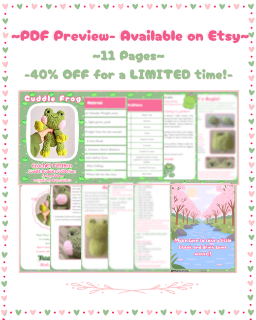 Hi! Welcome to Cuddle Frog Pattern- Fluffy version! This adorable Froggy is perfect for giving the best hugs, especially if he is made with a Fluffy Medium Weight Yarn or thicker! This is the 2nd pattern from my Cuddle Buddies- Spring Collection, with 3 more Cuddle Animals to come this season!