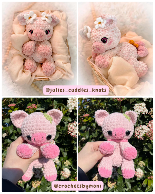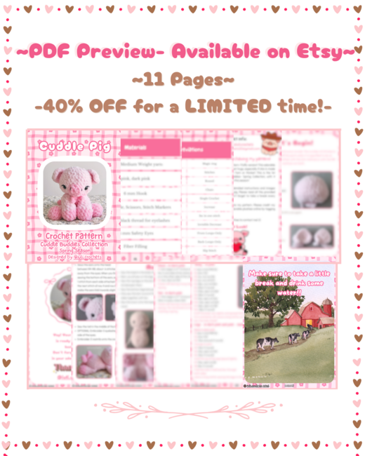 Hi! Welcome to Cuddle Pig Pattern- Fluffy version! This adorable Pig is perfect for giving the best hugs, especially if she is made with a Fluffy Medium Weight Yarn or thicker! This is the 1st pattern from my Cuddle Buddies- Spring Collection, with 4 more Cuddle Animals to come this season!